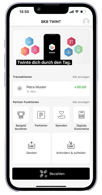 Die Zustimmung kann jederzeit in der BKB TWINT App widerrufen werden.