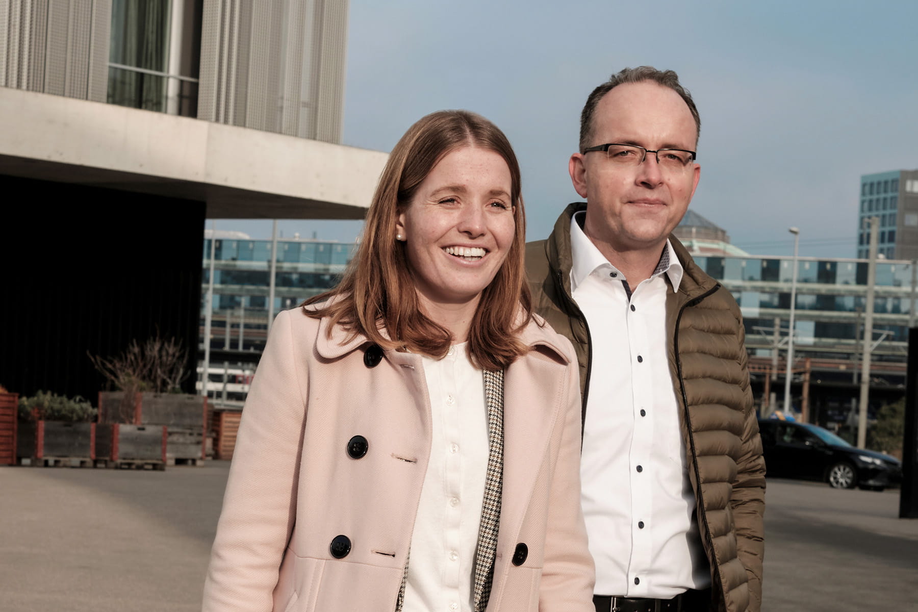 Foto: Sarah El Jaddar (Zaugg), Fachspezialistin Nachhaltigkeit kommerzielle Kunden; Michael L. Baumberger, Leiter KMU Kunden