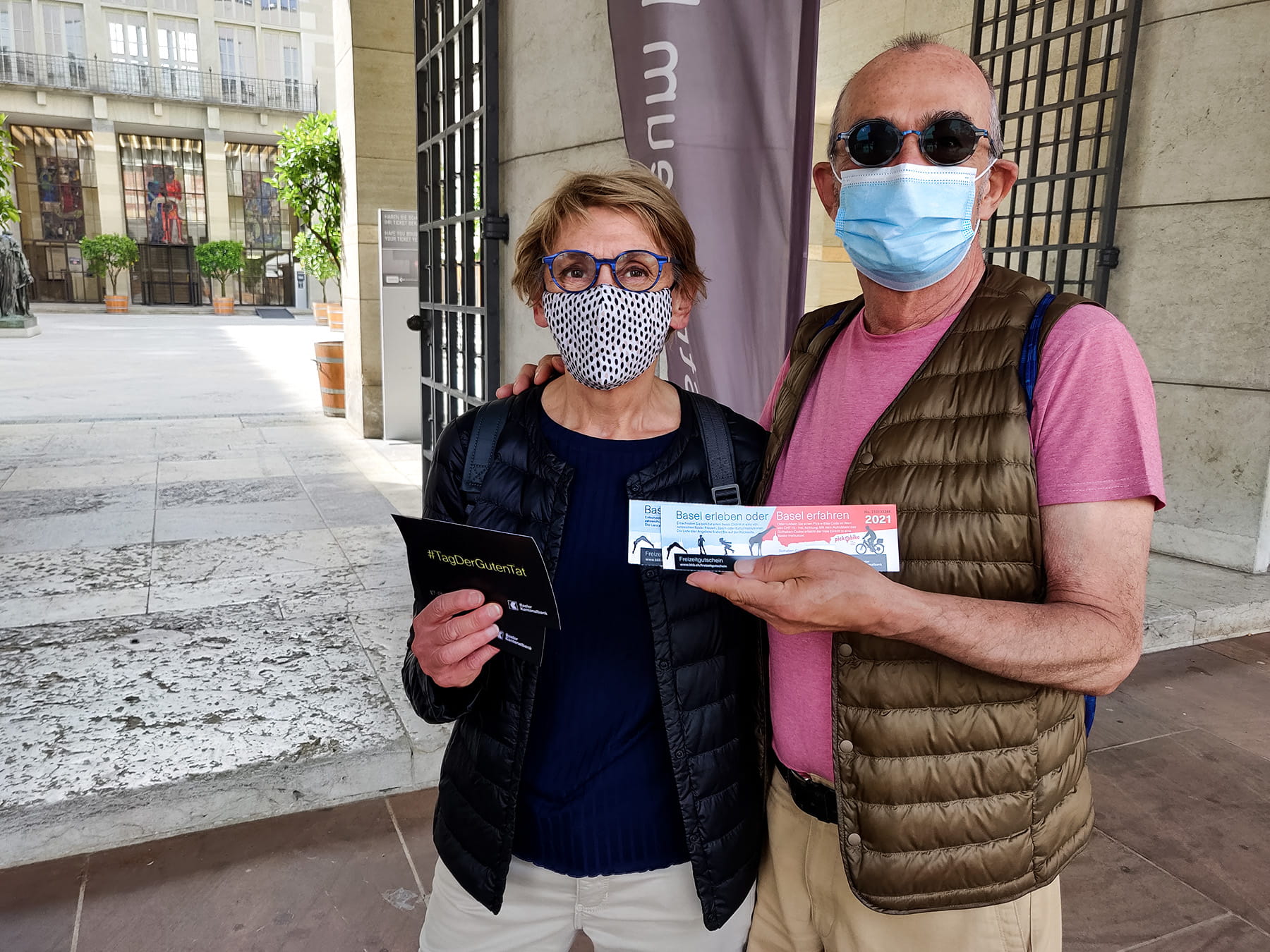 Am Samstag, 6. Mai 2023 fand zum vierten Mal der «Tag der guten Tat» statt. In Zusammenarbeit mit Surprise boten wir während des ganzen Tages gratis Soziale Stadtrundgänge an. Bei sechs verschiedenen Touren konten Sie Basel aus einer neuen Perspektive erleben. Die Stadtführerinnen und Stadtführer sind als armutsbetroffene und obdachlose Menschen die «Expertinnen und Experten der Strasse» und erzählten aus ihrem Leben.