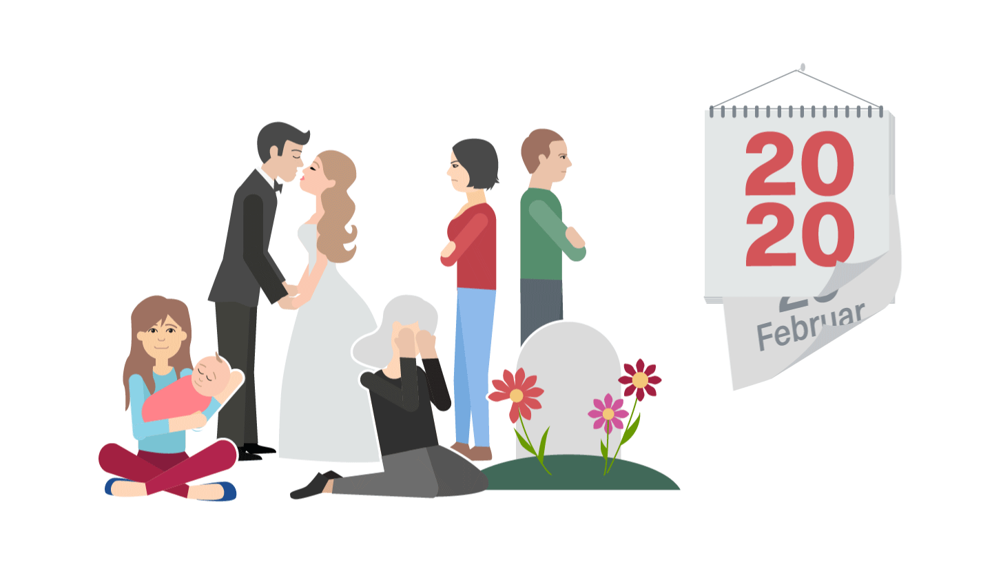 Auch der Zivilstand ändert sich. Im Schnitt heiraten pro Tag rund 112 Paare in der Schweiz. Allerdings gibt es klare Präferenzen bezüglich der Wochentage. Die meisten standesamtlichen Eheschliessungen finden an Freitagen statt (fast 390 pro Freitag im Jahr 2018). Danach folgt der Samstag mit rund 140 Eheschliessungen. Damit kann am Schaltsamstag 2020 mit rund 140 Eheschliessungen gerechnet werden. Bezogen auf konkrete Schalttage wurde der Schweizer Rekord übrigens im Jahr 2008 mit 465 Eheschliessungen aufgestellt. Der Schalttag 2008 war, wie nicht anders zu erwarten, ein Freitag. Am letzten Schaltsamstag im Jahr 1992 gaben sich immerhin 125 Paare das Jawort. Allerdings liessen sich hier auch 18 Paare scheiden. Der bevorzugte Tag für Scheidungen ist übrigens der Dienstag. Konkret auf Schalttage bezogen fällt der historische Scheidungsrekord allerdings auf den Schaltdonnerstag 1996, als schweizweit 72 Schweizer Paare geschieden wurden.
