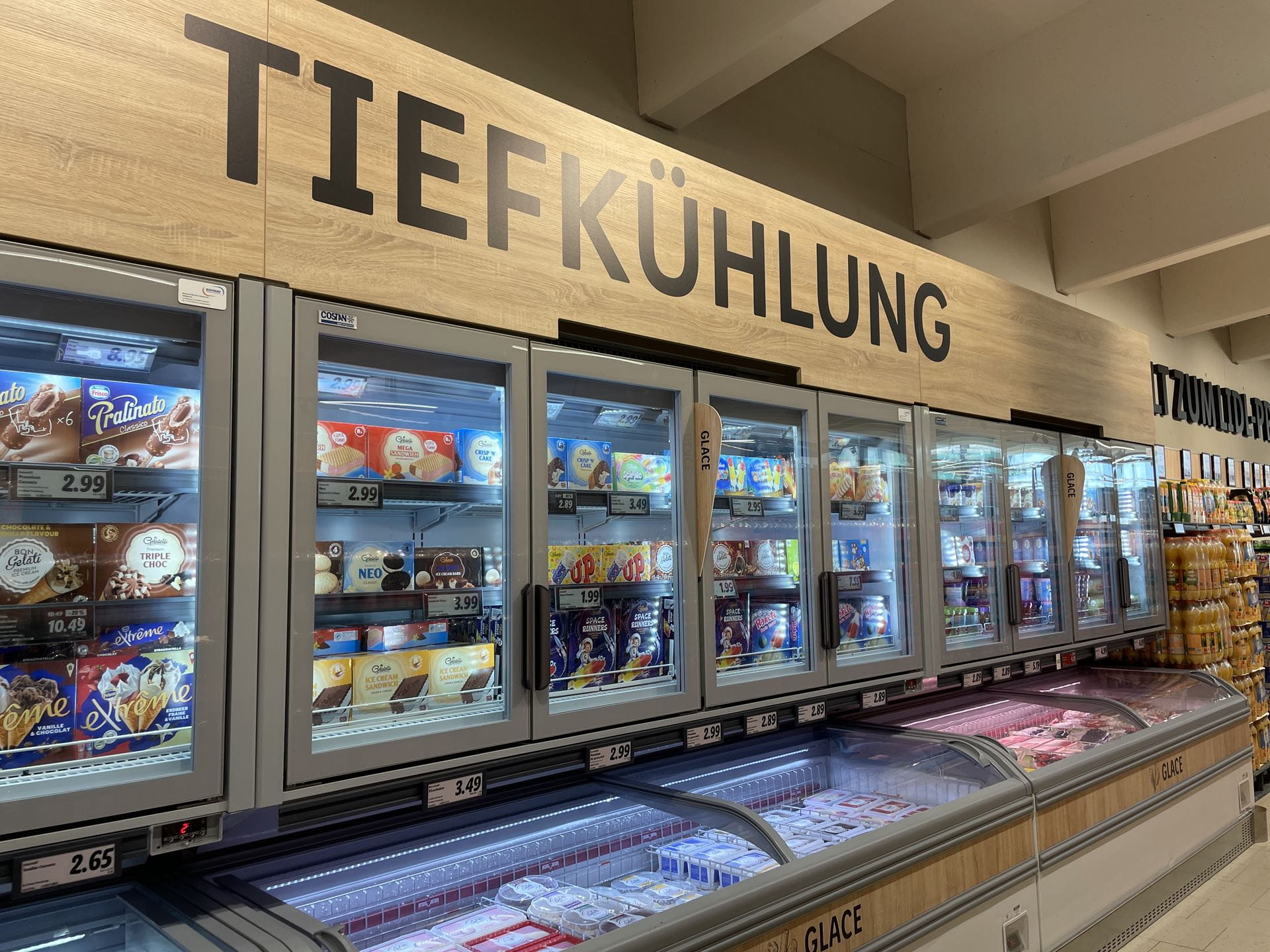 Bild: Tiefkühlregal Lidl Schweiz - Die vollständige Umstellung von synthetischen auf natürliche Kühlmittel wird noch bis 2033 voranschreiten.