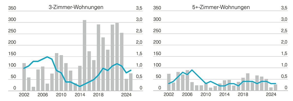 Trotzdem bleibt Wohnraum in Basel knapp. Der Grund: Das Angebot wächst deutlich langsamer als die Nachfrage. Deshalb ist die Zahl leerstehender Wohnungen weiterhin tief. Besonders schwer zu finden sind grosse Familienwohnungen mit fünf oder mehr Zimmern.