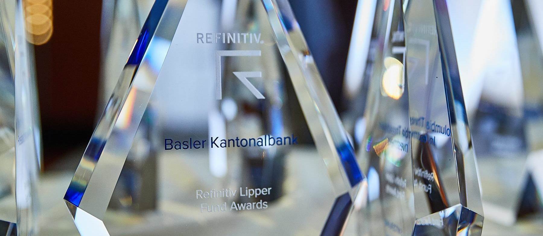 Refinitiv Lipper vergibt seit 2006 in der Schweiz jährliche Auszeichnungen sowohl an einzelne Fonds (Fund Award) als auch an Asset Management Unternehmen (Group Award) für ihre Produktfamilie. Die Basler Kantonalbank erhält mit dem «Refinitiv Lipper Group Award Switzerland 2020» für ihr Asset Management eine Auszeichnung für die gesamte Produktfamilie der BKB Anlagelösungen in der Kategorie «Mixed Assets - Small Company» d.h. für gemischte Strategiefonds.