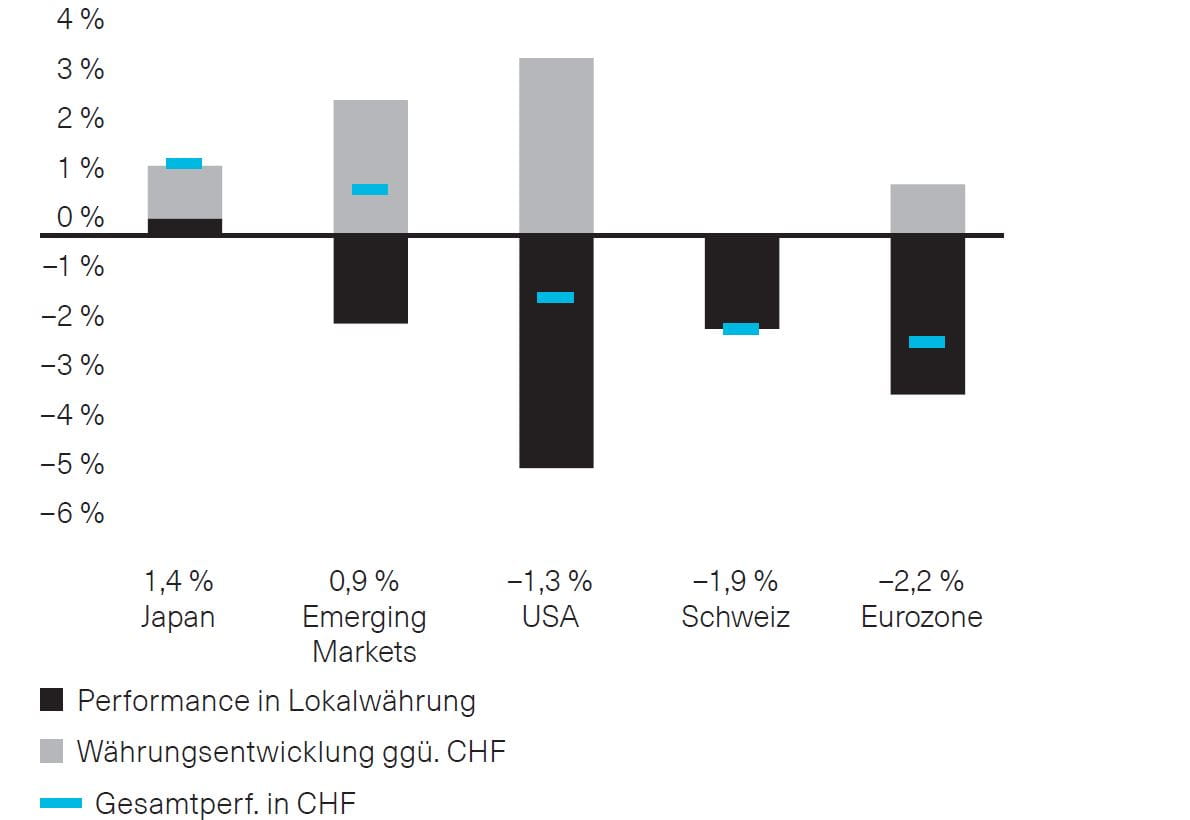 Abb. 1: Regionale Aktienperformance im September; Beiträge zum Net Total Return Index in CHF; Quelle: BKB, Bloomberg (MSCI)