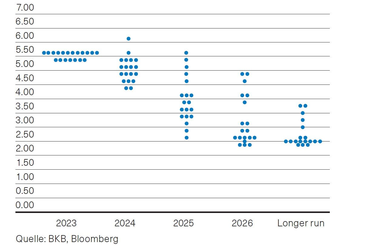 Abb.1: Leitzinsprojektionen der FOMC-Mitglieder; Quelle: BKB Bloomberg