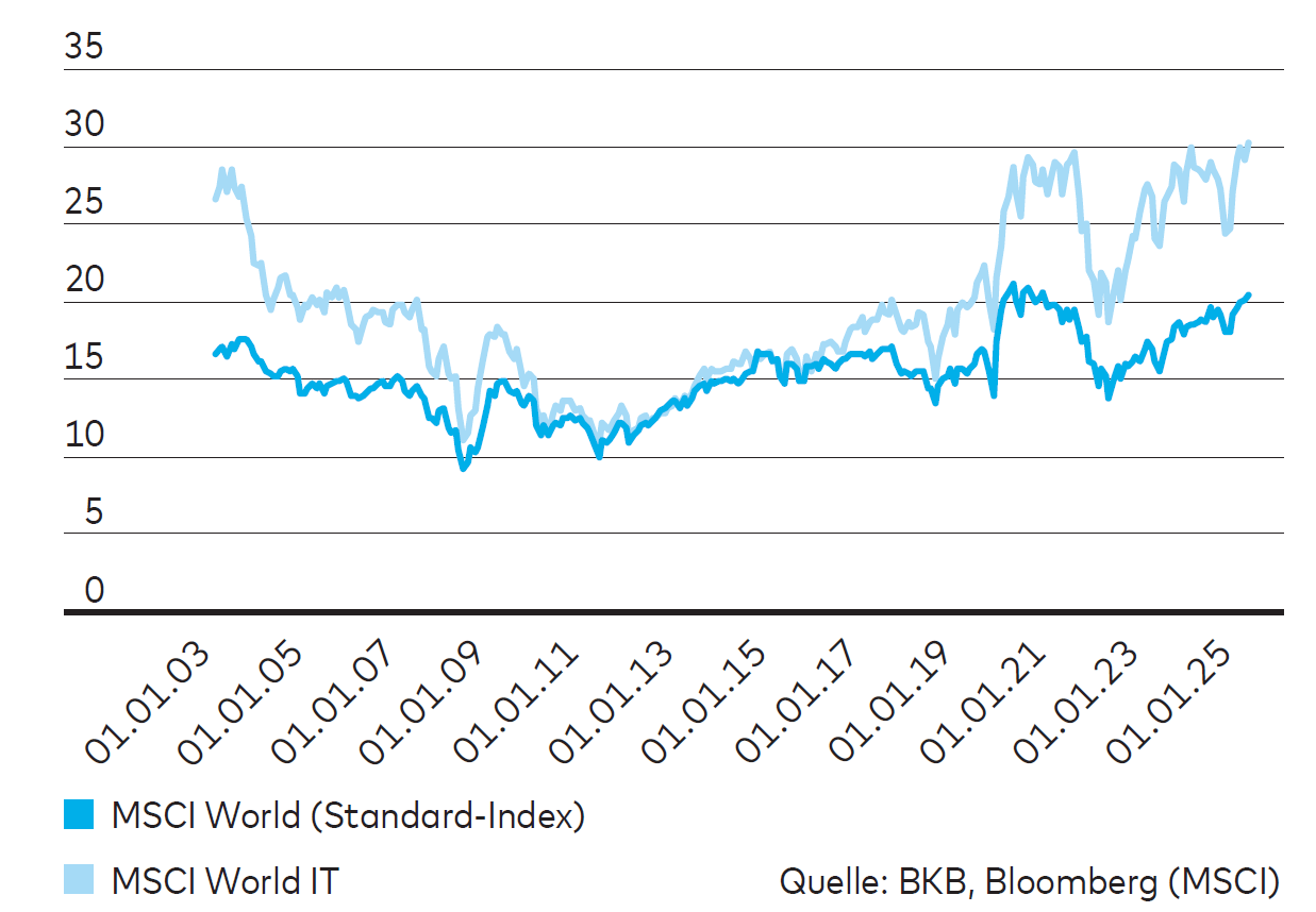 Abb. 2: Globale Bewertungsentwicklung: IT-Sektor versus Gesamtmarkt