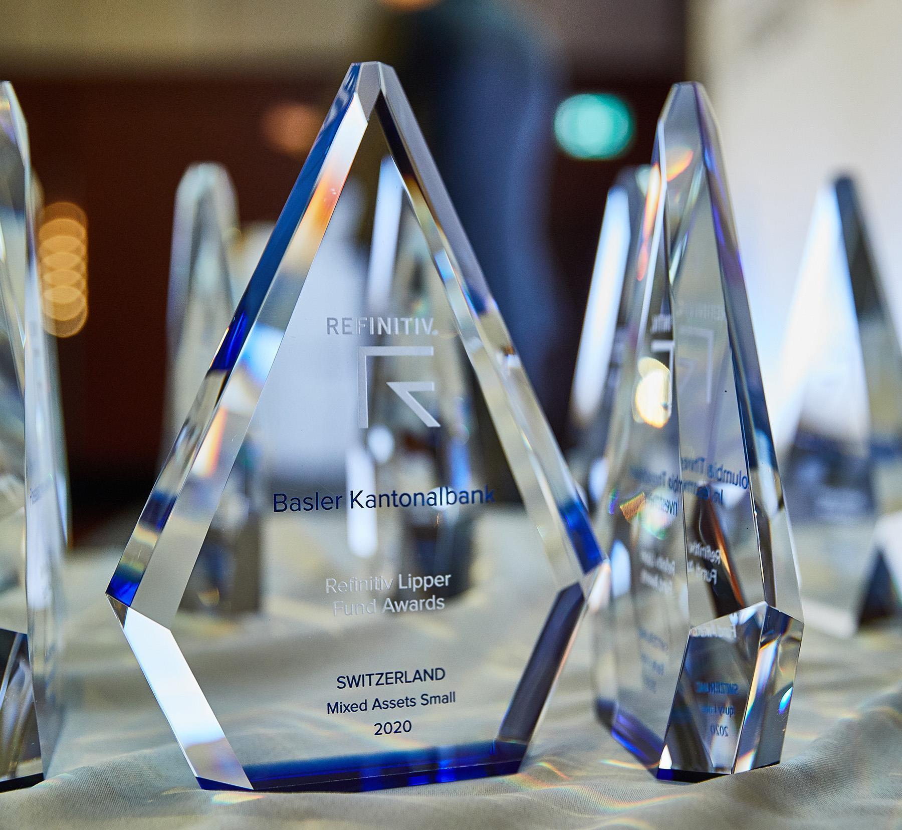Refinitiv Lipper vergibt seit 2006 in der Schweiz jährliche Auszeichnungen sowohl an einzelne Fonds (Fund Award) als auch an Asset Management Unternehmen (Group Award) für ihre Produktfamilie. Die Basler Kantonalbank erhält mit dem «Refinitiv Lipper Group Award Switzerland 2020» für ihr Asset Management eine Auszeichnung für die gesamte Produktfamilie der BKB Anlagelösungen in der Kategorie «Mixed Assets - Small Company» d.h. für gemischte Strategiefonds.