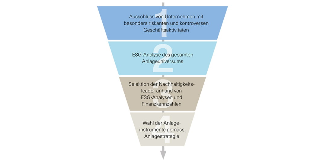 Wir wenden bei der Selektion von nachhaltigen Drittfonds und Wertschriften strenge Ausschlusskriterien an: