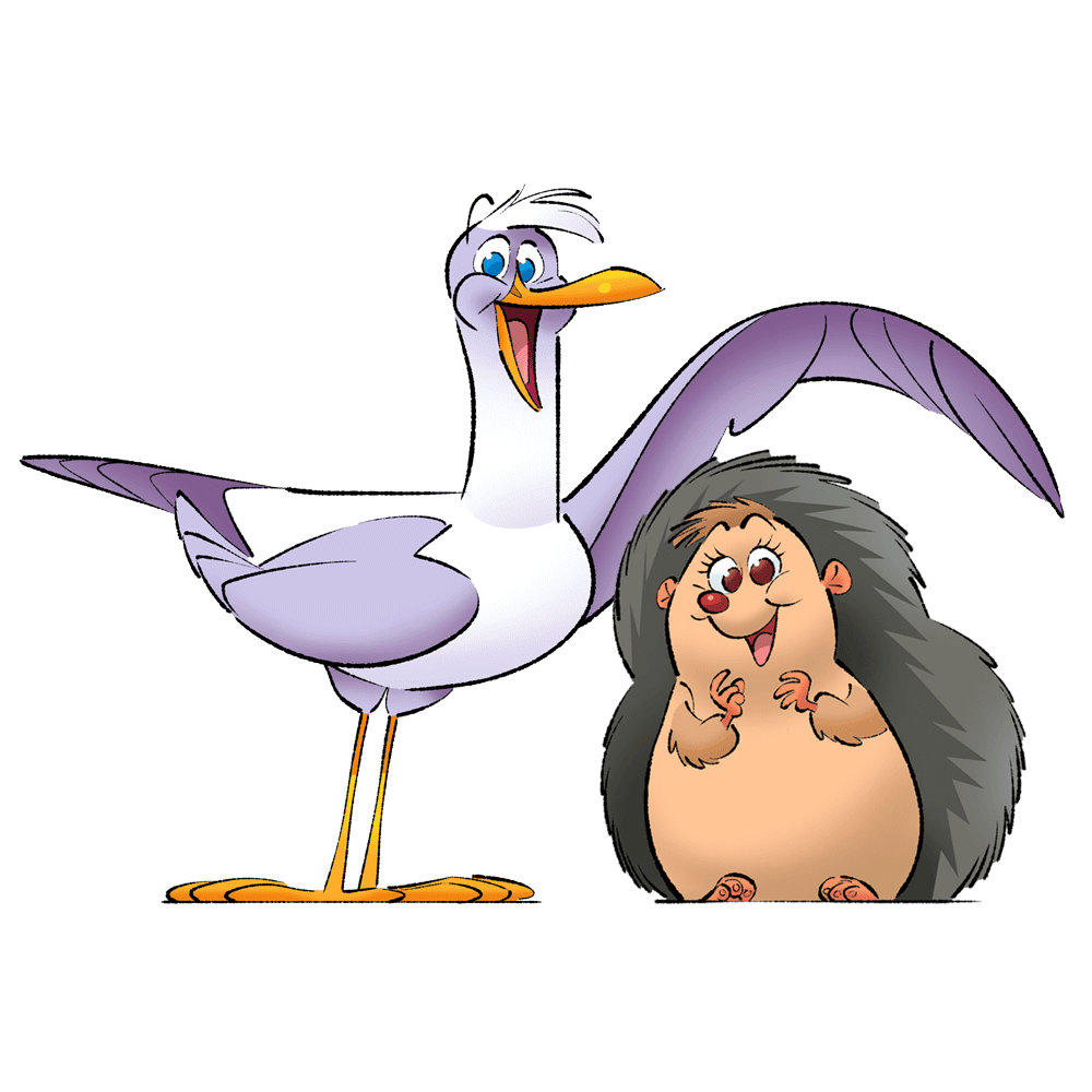 Igelmädchen Mimi ist vorsichtig: Sie grübelt dreimal nach, bevor sie in Aktion tritt. Sie ist hilfsbereit, verlässlich und weiss über vieles Bescheid. Die Möwe Max ist ein tapsiger Geselle, loyal und immer zu Spässen aufgelegt. Der richtige Kumpel, um sich ins Abenteuer zu stürzen.