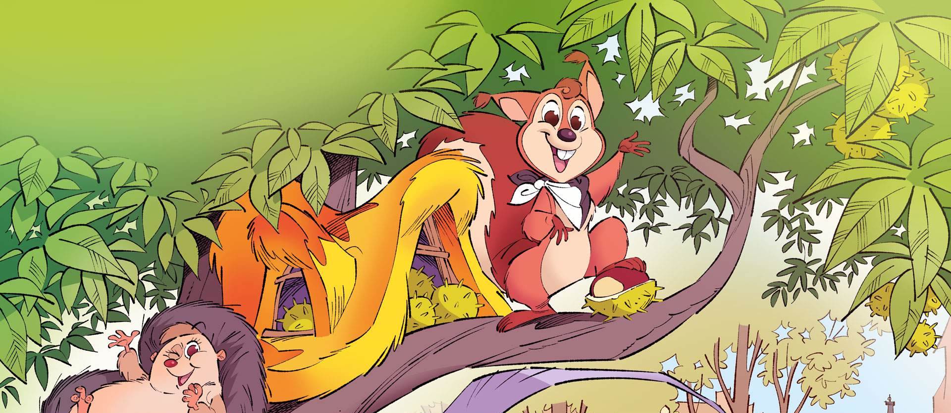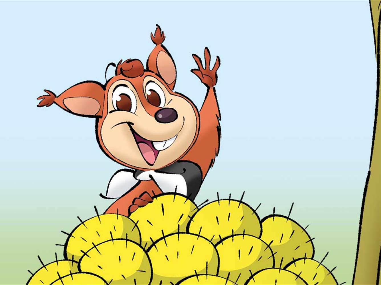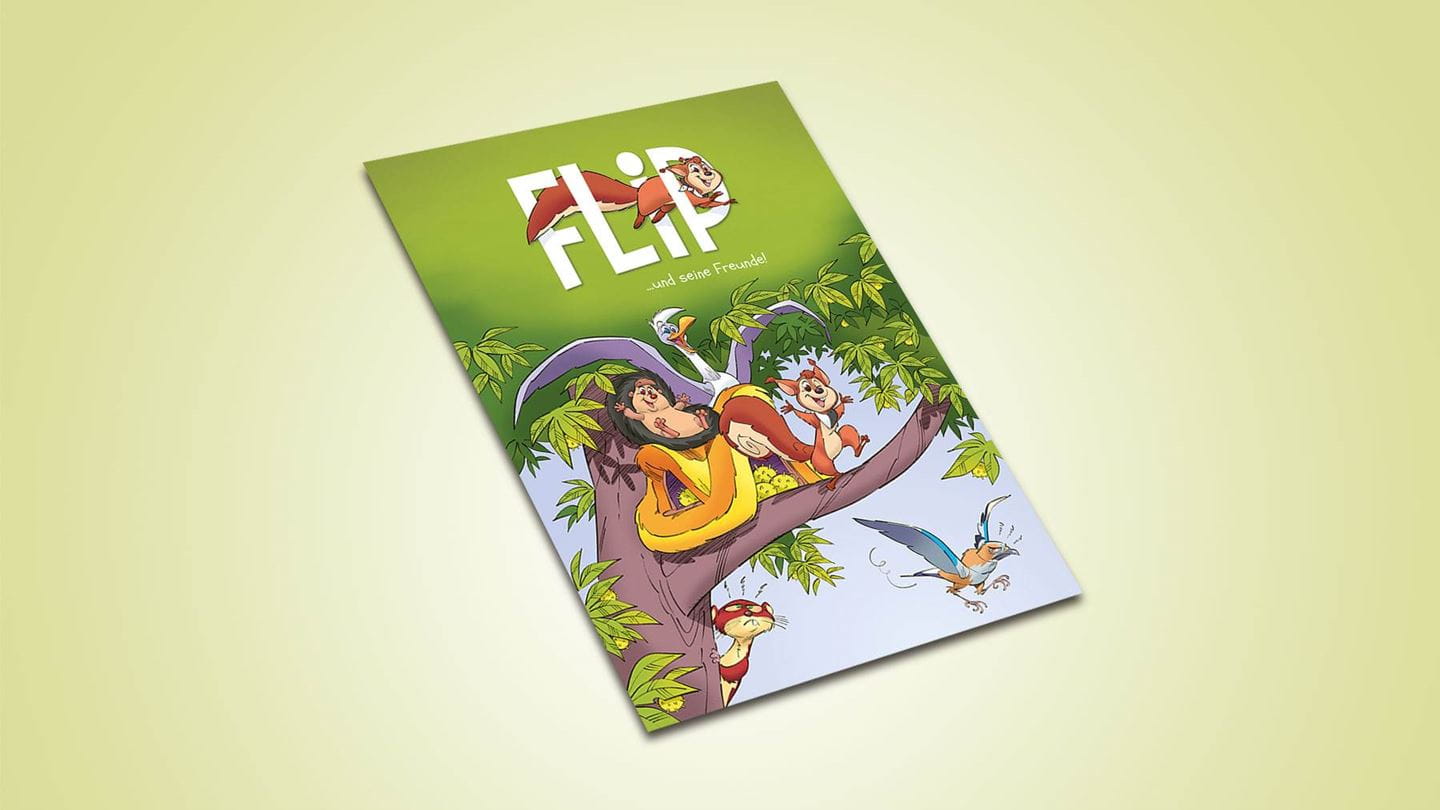 Flip ist ein Profi im Anlegen von Vorräten. Deshalb kennt er sich auch mit dem Sparen bestens aus. Er wohnt auf einer grossen Nusskastanie auf dem Basler Münsterplatz. Flips Freunde - Möwe Max und Igelmädchen Mimi – stehen ihm zur Seite.