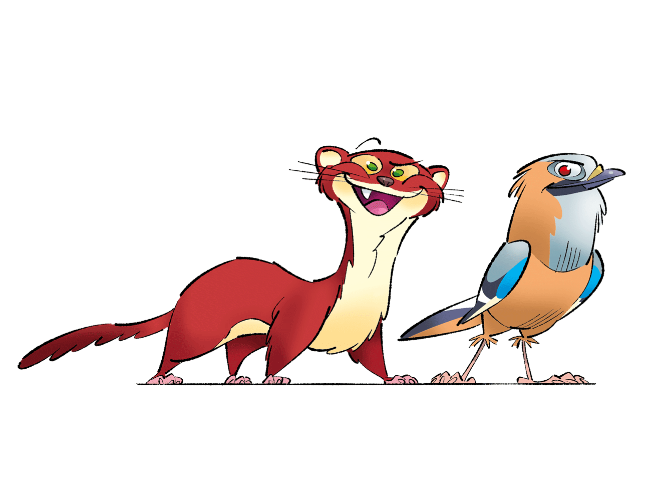 Eichelhäher Evi nimmt sich selber recht wichtig und möchte immer das «Sahnehäubchen» für sich. Und am besten den Rest des Kuchens auch. Evis Handlanger Wiesel Willy erhofft sich von Evi stets ein Stück vom Kuchen, sobald sie einmal das Sahnehäubchen erobert hat.