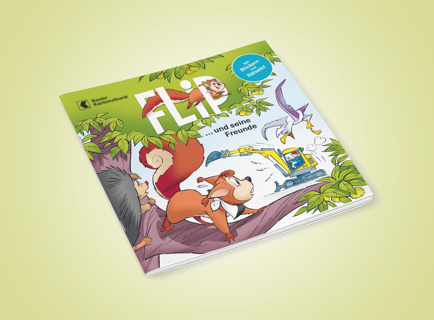 Begleitet unseren flauschigen Sparhelfer Flip auf seinem ersten Abenteuer: Holt Euch das kostenlose Bilderbuch mit coolem Stickerbogen und Rätselspass in einer unserer Filialen.