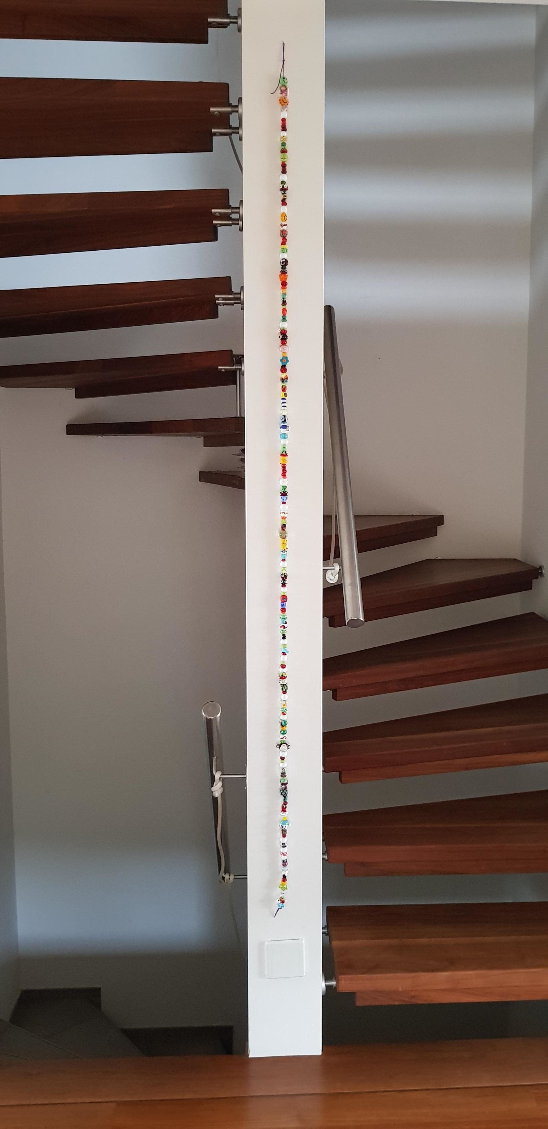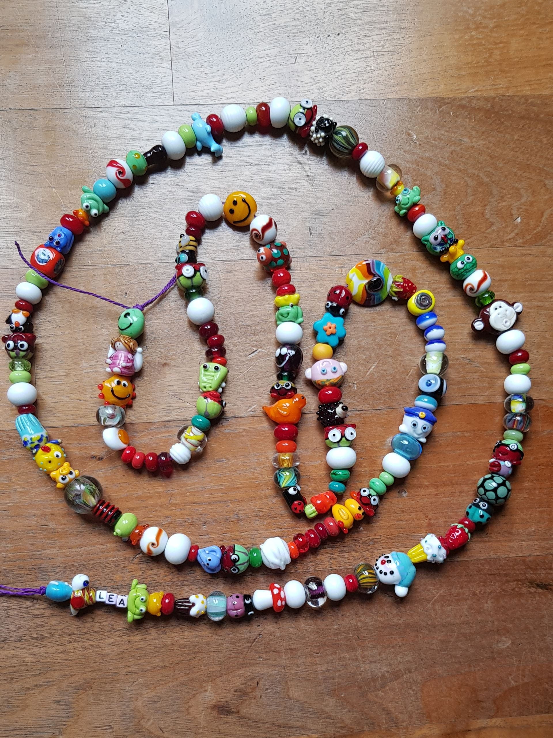 Je nach Therapie und Untersuchungen, kommen in der Folgezeit die unterschiedlichsten Perlen dazu: Die 'Chemo-Kasper'-Perle als Symbol für eine Chemotherapie oder die 'Radio-Robby'-Perle bei einer Strahlentherapie. Ein Tierchen steht für das schmerzhafte und unangenehme stechen eines 'Ports', Spiralwalzen für Transfusionen und ein Glückskäferchen gibt es bei einer OP. Lea hat im Laufe ihrer Behandlung sage und schreibe 170 Perlen an einer langen Schnur gesammelt (siehe Bilder oben).