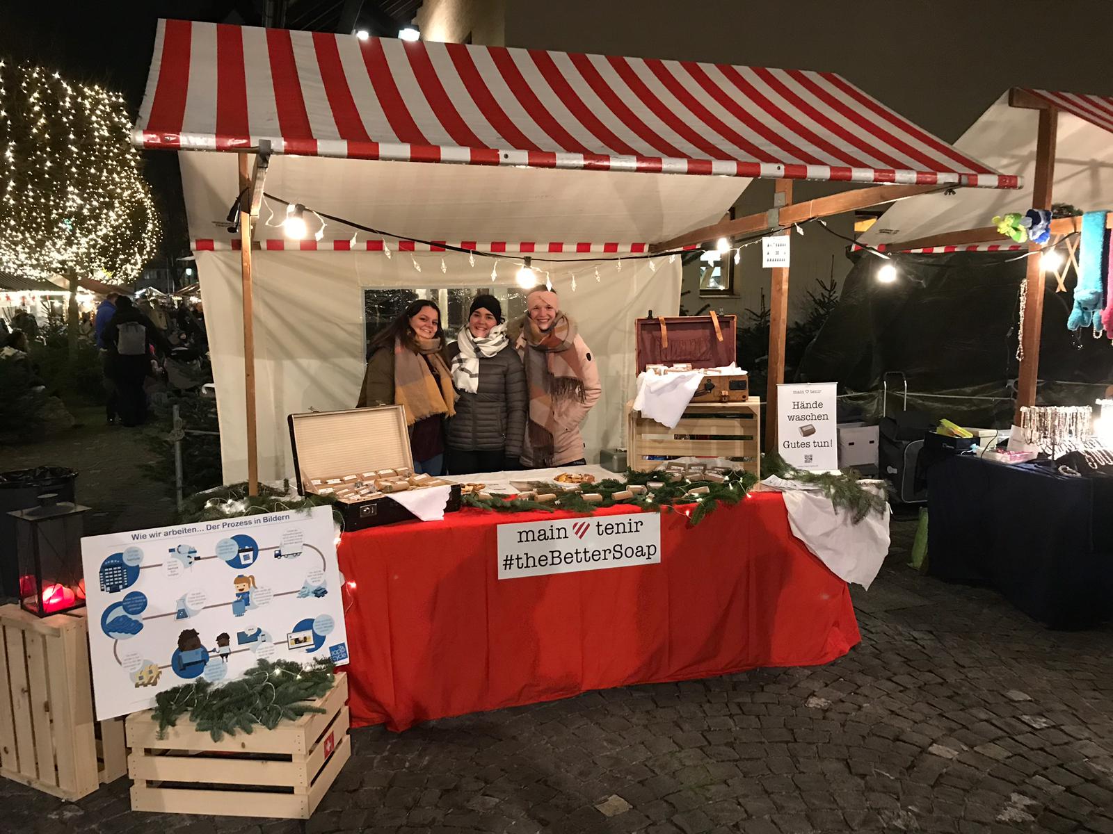 Die drei Studentinnen von «main ♥ tenir»  geben einem Teil der Seifen von «SapoCycle» eine liebevolle und umweltschonende Verpackung und verkaufen sie mit viel Enthusiasmus und Elan zur Unterstützung der Non-Profit-Organisation. Alle Einnahmen gehen an «SapoCycle»