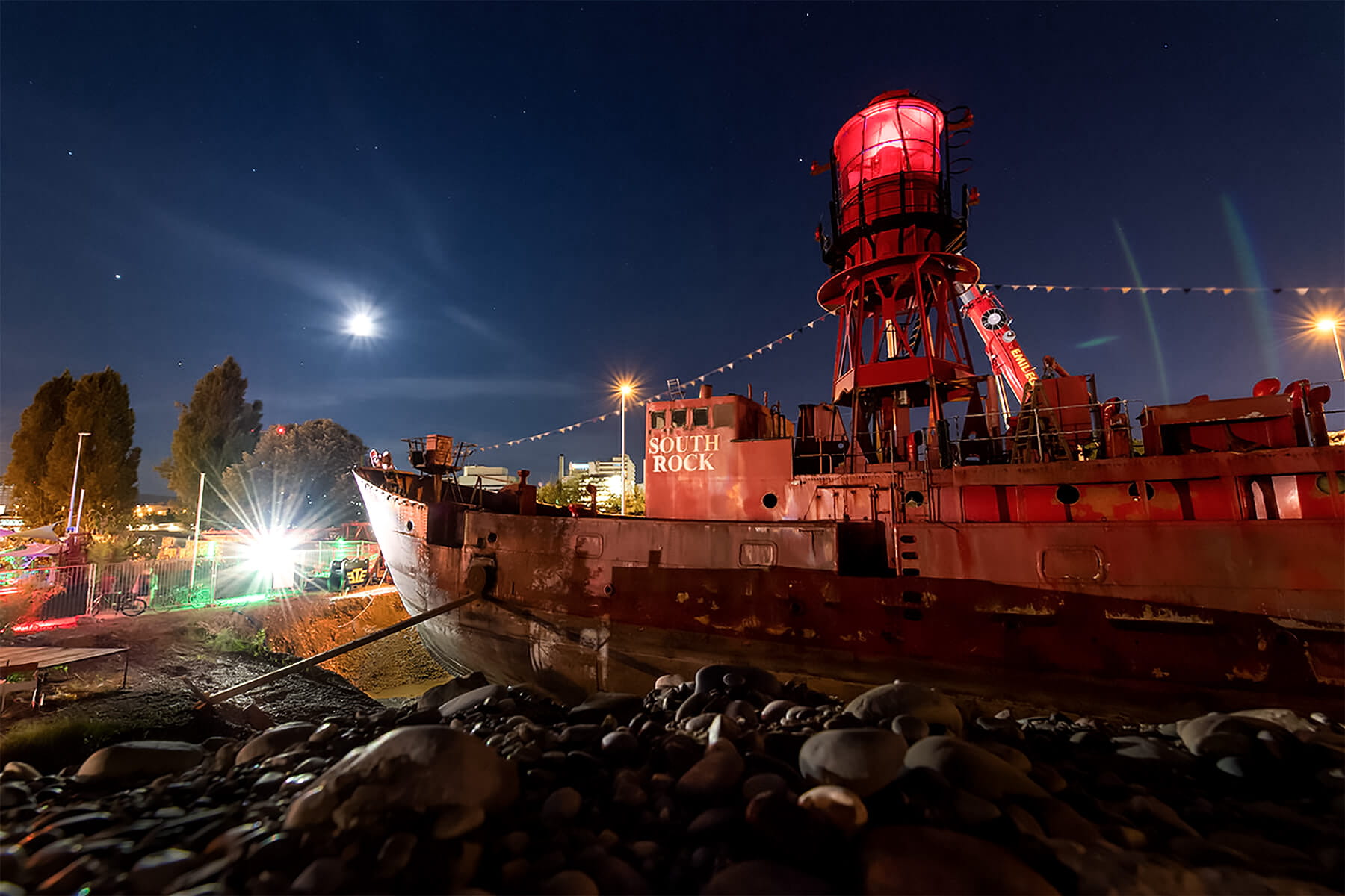 Cookies akzeptierenFeuerschiffe haben ein wildes Leben. 55 bewegte Jahre warnte die «Gannet» (zu dt. Tölpel) andere Schiffe vor schroffen Klippen. Doch bei übler Sicht und hohem Seegang halfen weder ihr 12 Meter hoher Leuchtturm noch die rote Warnfarbe. Oft brauchte es die vollen 42 Meter Körpereinsatz, damit Schiffe in Not nicht vor Irlands Küste zerschellten. Schaurige Narben und eine tiefe Kerbe im Schiffbauch zeugen von heftigen Kämpfen. Gut, hat das Feuerschiff eine dicke Haut, fast zwei Zentimeter besten Stahl. Macht 550 Tonnen Lebendgewicht.