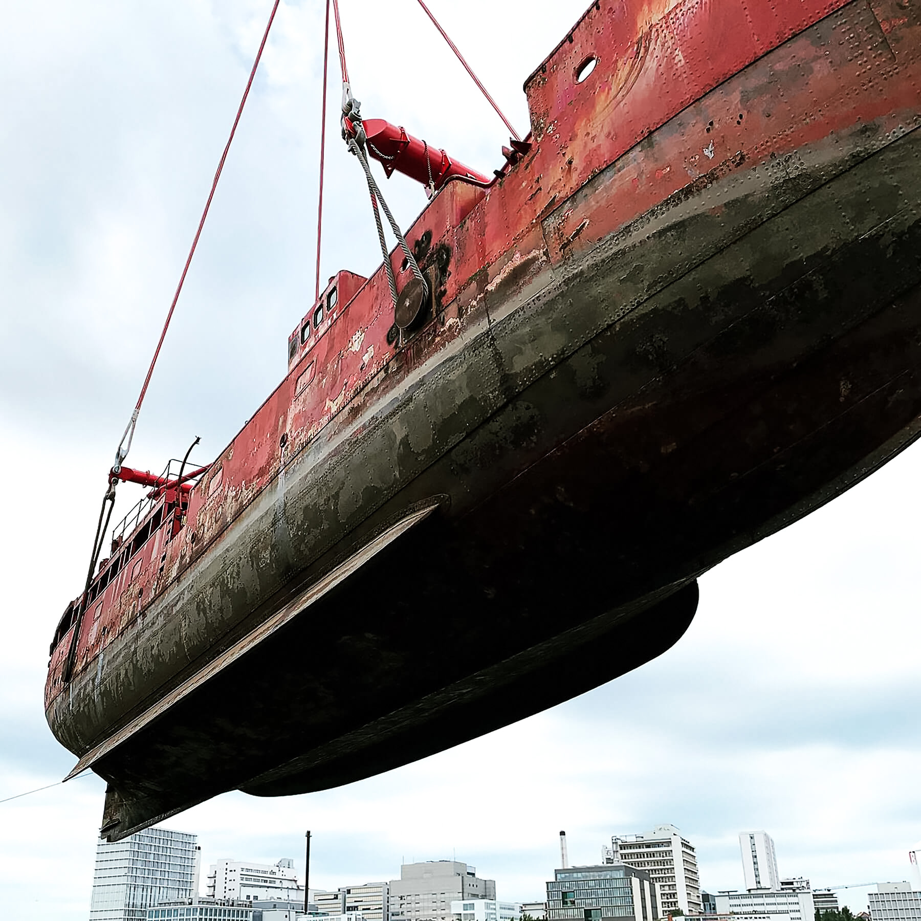 Die Feierabendrunden im Sommer 2018 waren dementsprechend geprägt von Galgenhumor und verrückten Fantasien für den finalen Fanal am Hafen. Dann kenterte das Baggerschiff Merlin mehr oder weniger direkt vor ihrem Gelände – und auf der Terrasse keimte die Idee eines Kulturkahns. Die Crew beschloss: «Muss die Merlin auf den Schrottplatz, holen wir die!»