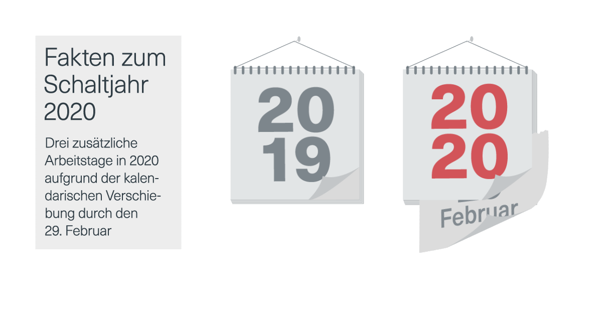 Die Analyse kommt zum selbstverständlichen Schluss, dass im Jahr 2020 aufgrund des zusätzlichen Schalttages mehr erwirtschaftet wird als in «normalen» Jahren. Der 29. Februar 2020 fällt auf einen Samstag. Allerdings weist das Jahr 2020 damit aufgrund der kalendarischen Verschiebung nicht einen zusätzlichen Samstag, sondern einen zusätzlichen Wochentag auf. Gleichzeitig verschiebt sich der Nationalfeiertag auf den Samstag. Die Weihnachtsfeiertage, welche 2020 ohne Schalttag komplett während der Arbeitswoche stattgefunden hätten, geben ebenfalls einen Tag an den Samstag ab. Der kalendarische Wachstumsimpuls gegenüber 2019 wird damit nicht nur durch einen, sondern durch insgesamt drei zusätzliche Arbeitstage geprägt. Eine ähnliche Konstellation trat zuletzt im Jahr 2004 auf. Hierbei ist anzumerken, dass sich das vergangene Jahr bezüglich Feiertage sehr arbeitnehmerfreundlich zeigte.