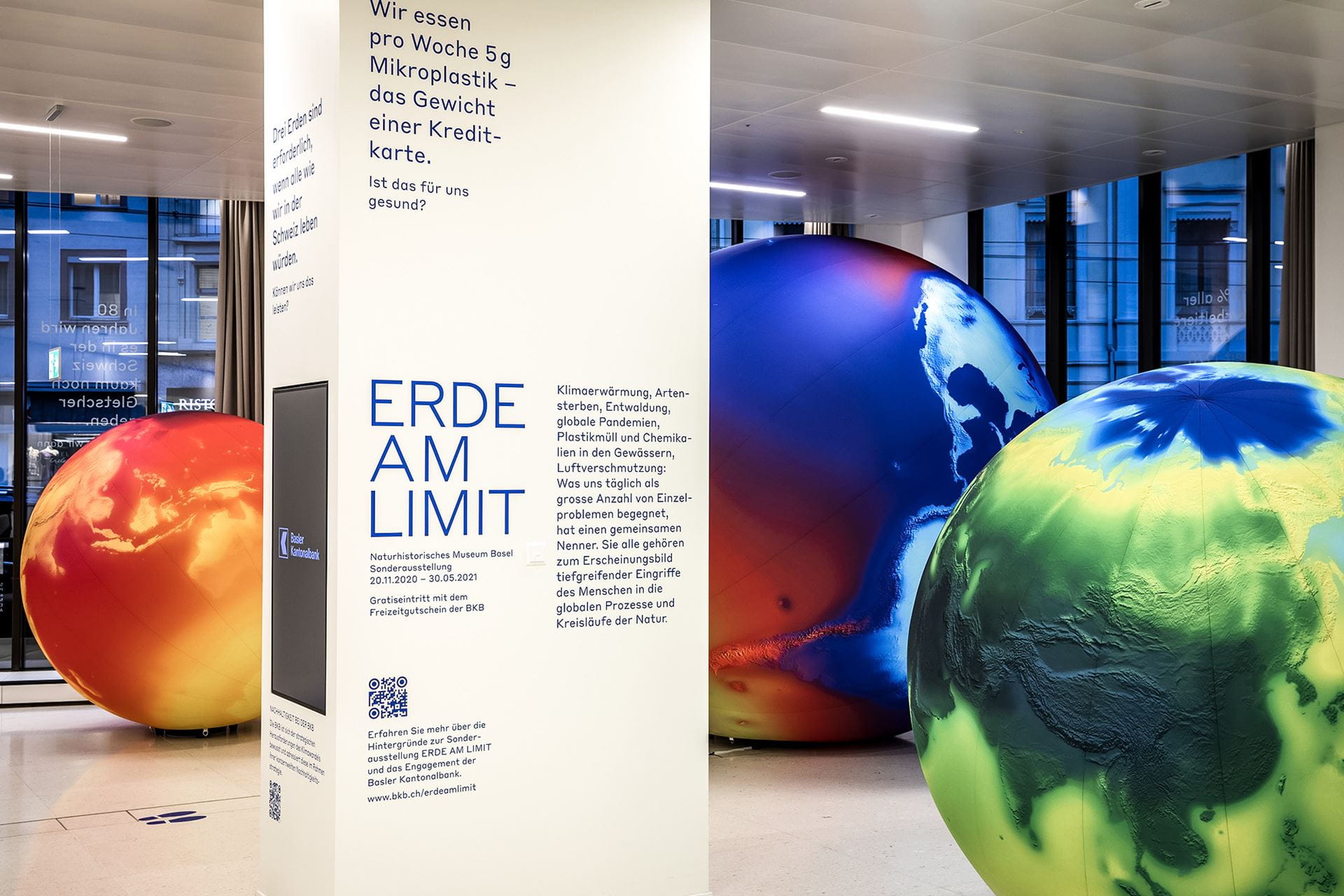 Bild: Ausstellung Erde am Limit; Ausstellungs-Satellit in der BKB-Filiale Spiegelgasse