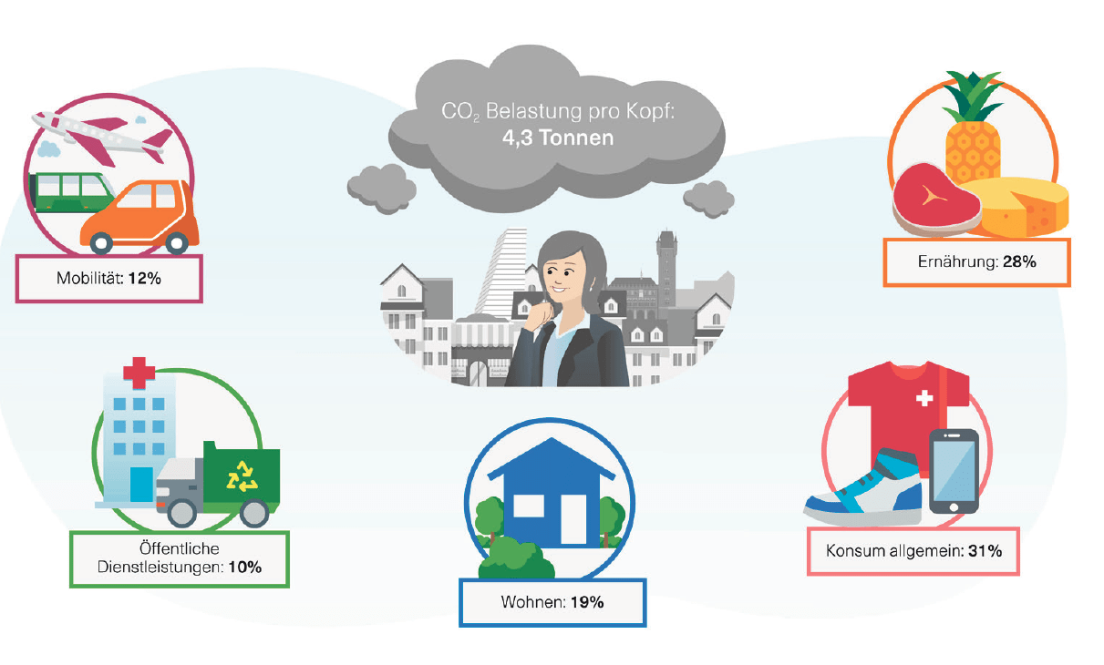 Fast alle Dinge, die wir besitzen und konsumieren, werden mit viel Aufwand und Verbrauch natürlicher Ressourcen hergestellt. Menschen in der Region Basel verursachen durchschnittlich 4,3 Tonnen CO² pro Jahr – nimmt man die CO²-Emissionen aus dem Ausland hinzu, sind es gar 13,5 Tonnen. Das ist in etwa das Dreifache dessen, was der Planet vertragen würde. Was viele unterschätzen: Ein beachtlicher Teil der persönlichen CO²-Belastung ist auf den eigenen Konsum zurückzuführen.