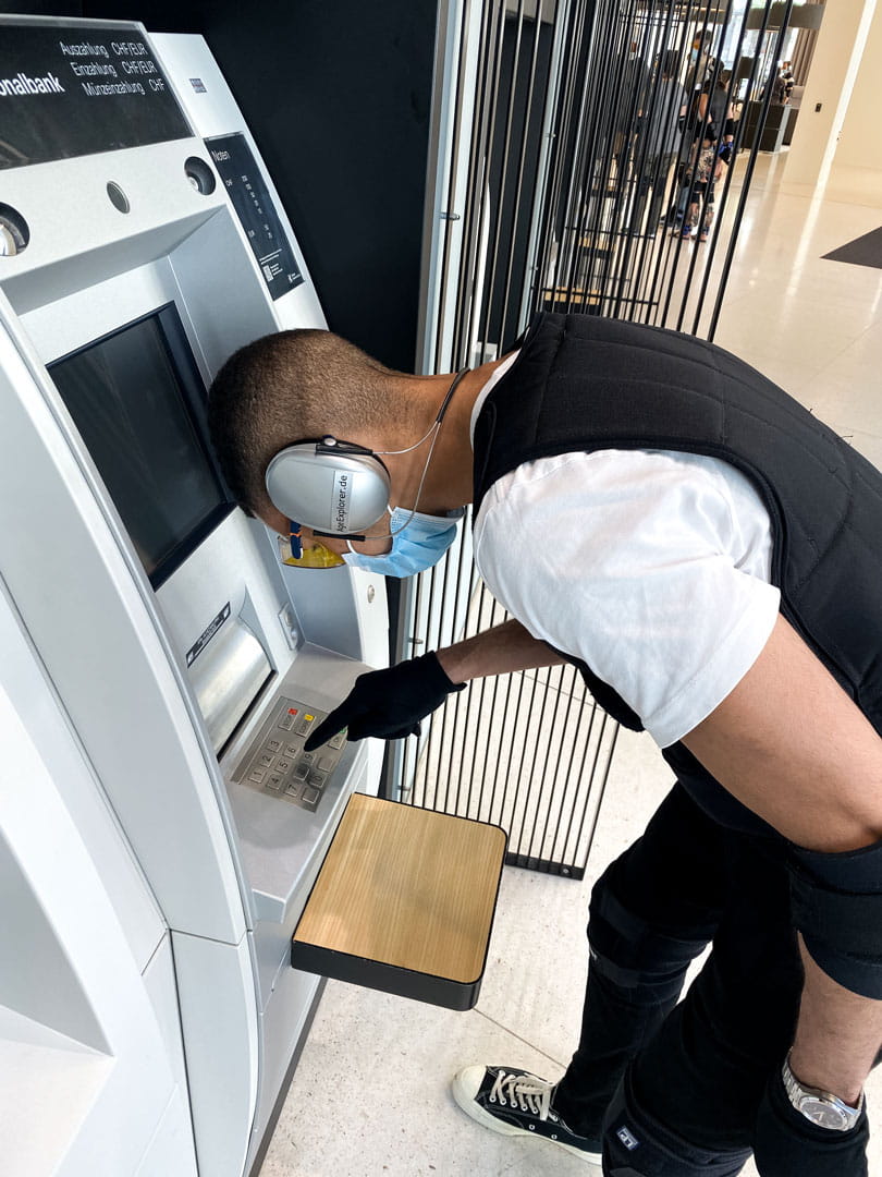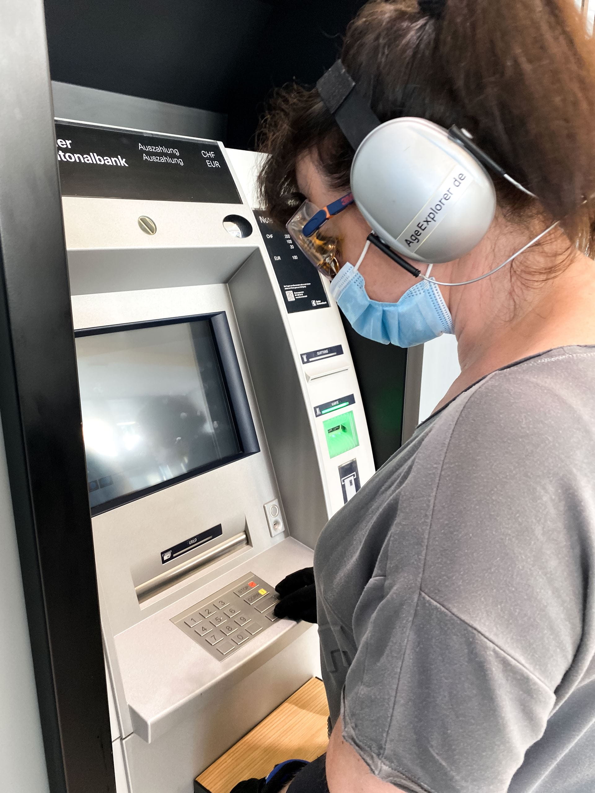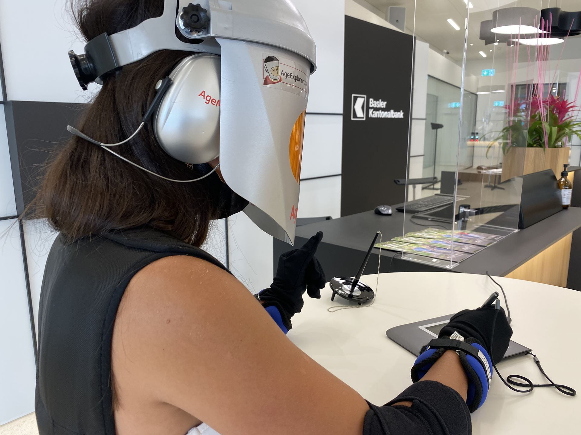 Das von uns beauftragte Swiss Age Explorer Institute arbeitet mit einem speziellen Ansatz: Die Schulungsteilnehmer sollen sich in Ältere hineinversetzen, um so nachvollziehen zu können, wie Ältere bankspezifische Situationen wahrnehmen und mit diesen umgehen. Der Clou des Ganzen: Die Schulungsteilnehmer wurden in spezielle Alterssimulationsanzüge gesteckt.Die Age Explorer-Anzüge sind so präpariert, dass mit ihnen die Wahrnehmungs- und Erfahrungswelt älterer Menschen simuliert werden kann. Die Anzüge besitzen Gewichte am Oberkörper, an Armen und Beinen und sind mit Gehördämpfern und Spezialvisieren ausgestattet, die ein schlechteres Sehvermögen simulieren. Handschuhe verringern unter anderem die Fingerfertigkeit und lassen die Kräfte in den Händen schwinden. – So ausgestattet haben unsere Vertriebsmitarbeitenden am eigenen Leibe erfahren, was alt sein bedeutet.