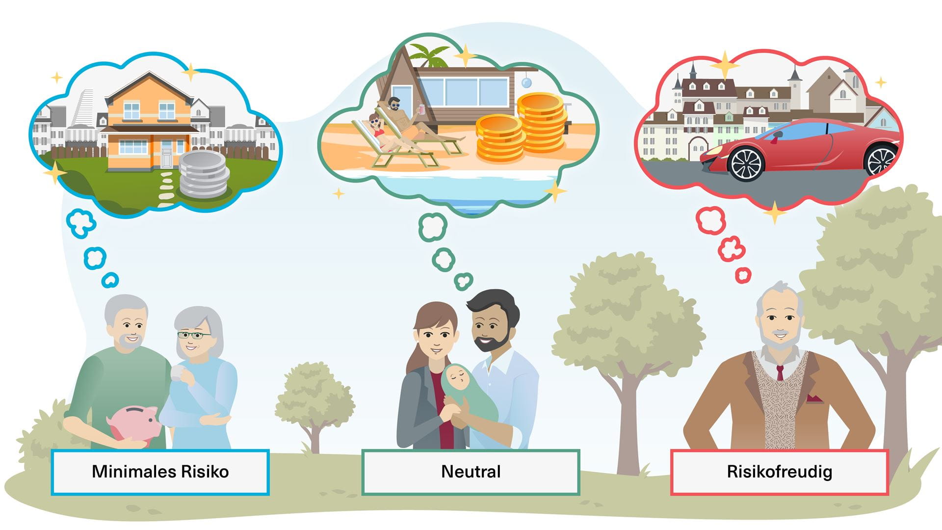 Welches Verhältnis habe ich zum Risiko? Wie gehe ich emotional damit um, wenn mein Vermögen wegen schwieriger Marktverhältnisse plötzlich schrumpft?