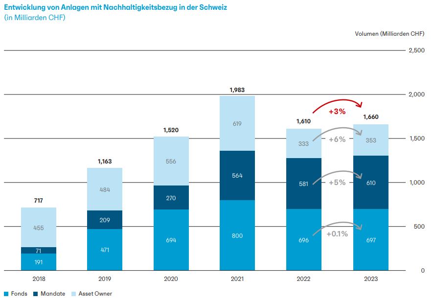 Entwicklung nachhaltiger Anlagen in Milliarden Franken; Quelle: Swiss Sustainable Finance