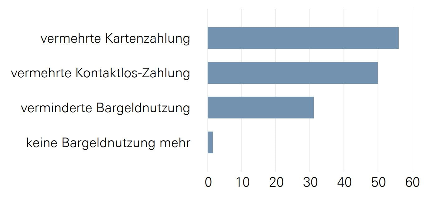 Frage: «Wie hat sich Ihr Zahlungsverhalten, also die Nutzung verschiedener Zahlungsmittel, durch die Coronakrise nachhaltig verändert?»