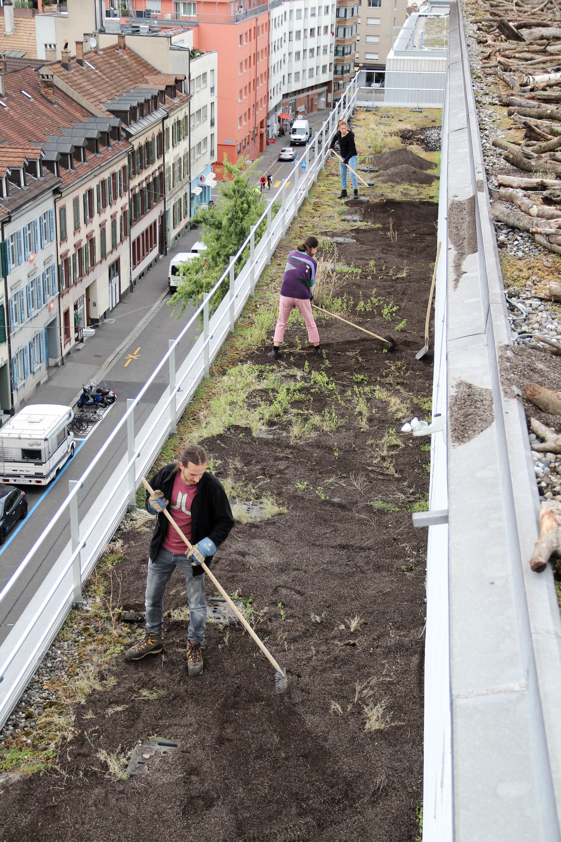«Wir erschaffen keine Gärten zur Entspannung für Menschen. Sondern ungestörte Grünflächen, die als Trittstein und Rückzugsort für die unzählige Tierarten funktionieren», erklärt der Student. Im Sommer kühlend, im Winter isolierend, sind die vom Verein begrünten Flachdächer zudem auch aus energetischer Sicht ein voller Gewinn: in den Sommermonaten heizt das Haus durch die Substratschicht auf dem Dach weniger auf, im Winter entweicht durch das Substrat weniger Wärme nach aussen – es muss weniger geheizt werden.