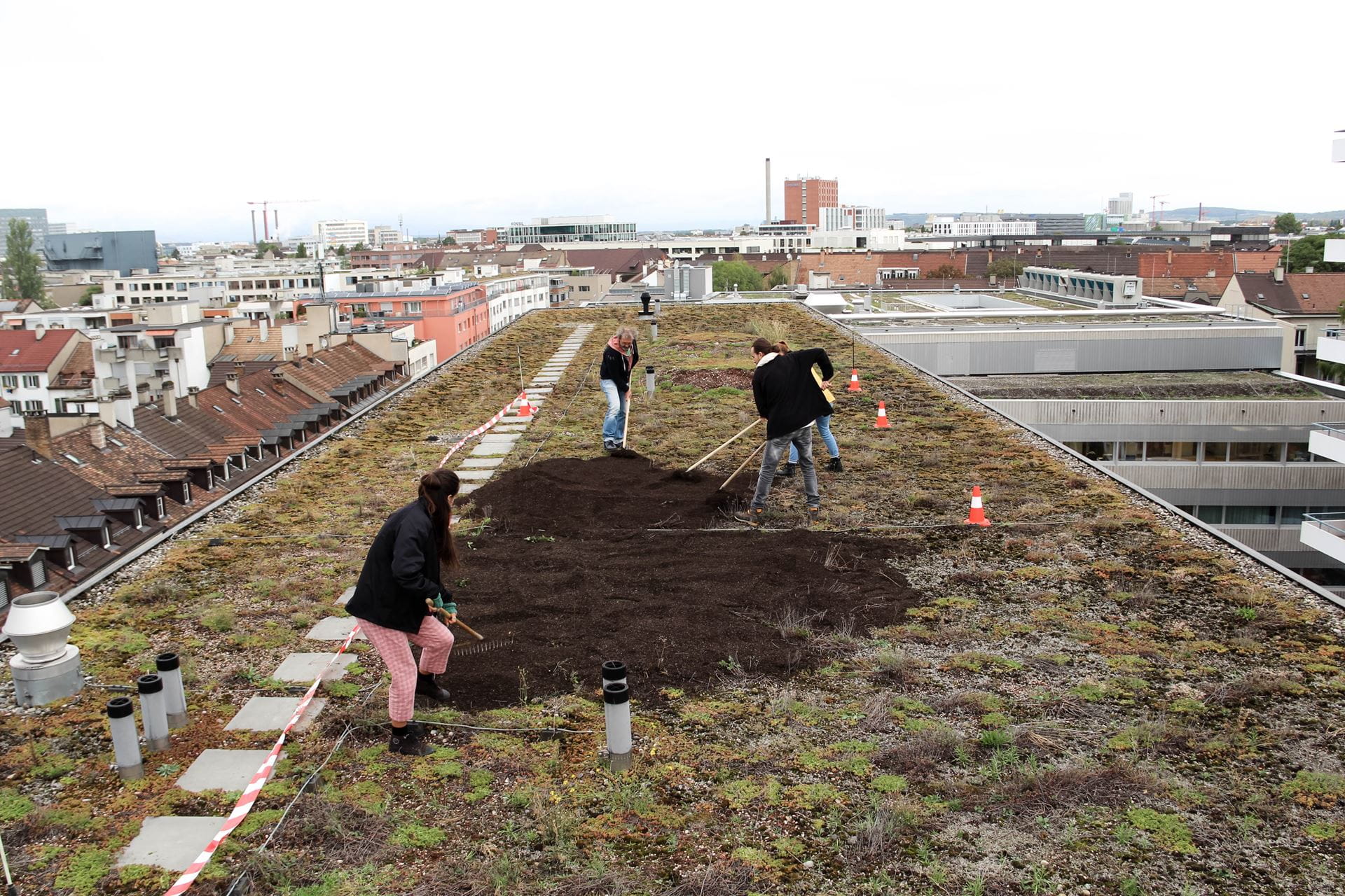 Bild: Dach des Departements für Biomedizin nach der Begrünung durch den Verein, Substrat ca. 16 Zentimeter
