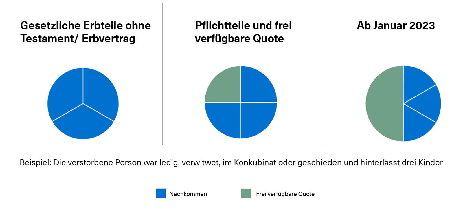 Grafik: Gesetzliche Erbteile mit und ohne Testament