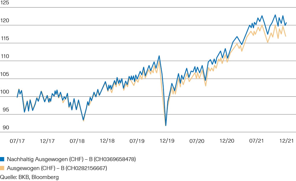 Abb. 1: Nachhaltige und traditionelle Anlagelösung «Ausgewogen» im Vergleich
