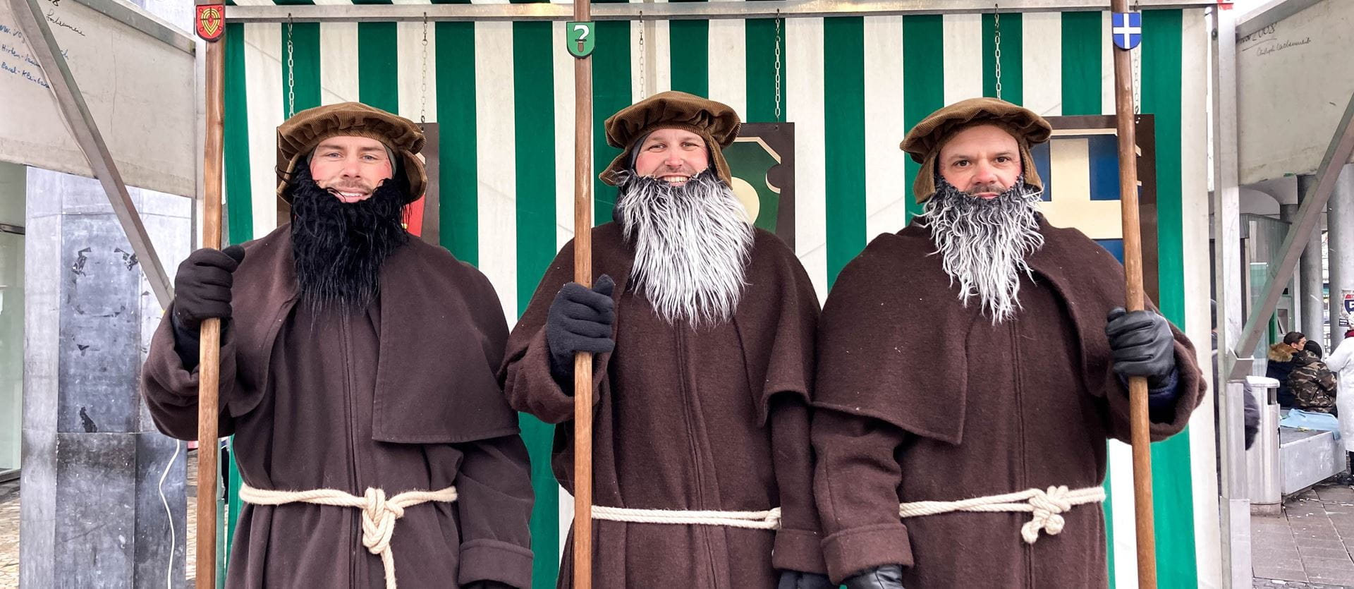 Die «Kleinbasler Hirten» der Adventszeit 2023 sind bereit: Und auch Flurin, Raphael und Adrian sind dieses Jahr mit von der Partie: Zusammen mit weiteren Teilnehmern der berühmten «3E» haben sie in diesem Jahr ein Zeitfenster am 1. Adventswochenende auf dem «Hirtenpodest» ergattern können. Auf ihren Einsatz am letzten Samstag freuten sich riesig. Und nach getaner Arbeit liessen sie den Tag in gemeinsamer geselliger Runde bei einem gemütlichen Abendessen ausklingen. Wir fragten sie: Was macht den Hirten-Einsatz für sie persönlich so besonders?