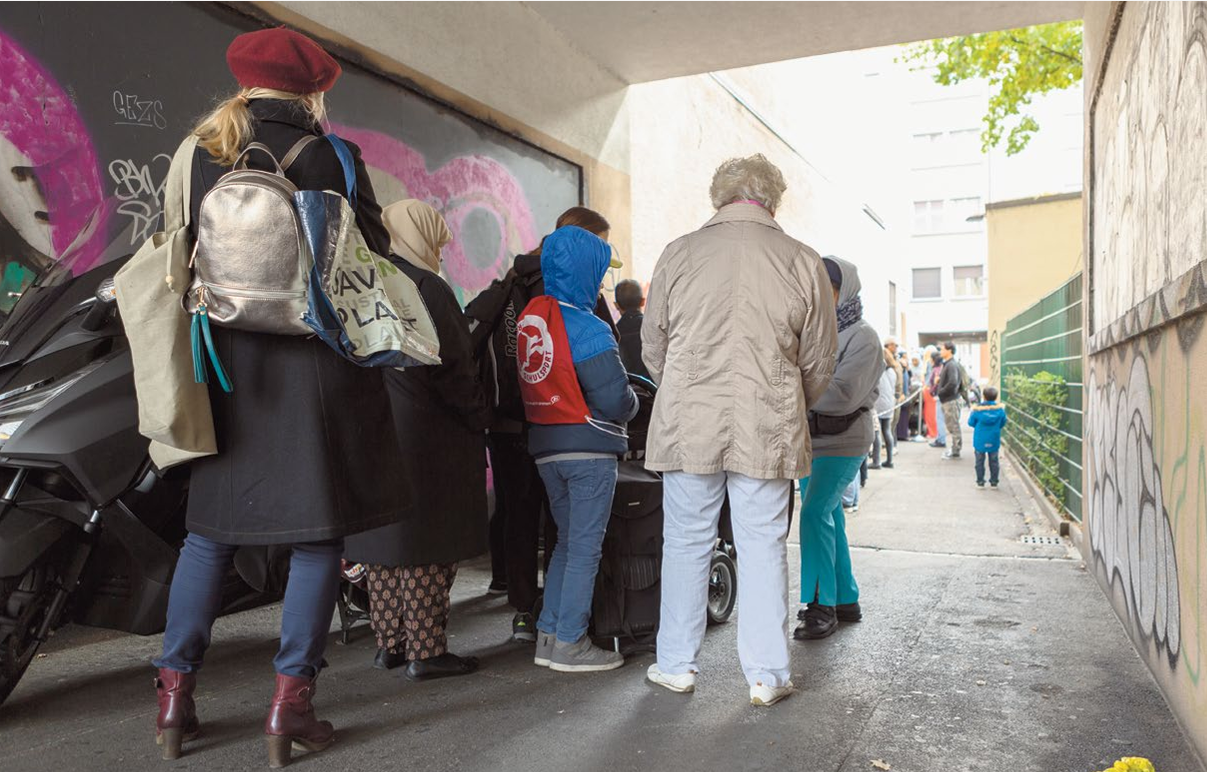 An der Schwarzwaldallee 175 am Badischen Bahnhof ist jeden Dienstag viel los. Die Warteschlange vor der Abgabestelle, deren Länge mit den Jahren gefühlt eher zu als abnimmt, gehört hier längst zum bekannten Stadtbild. Neben Baslerinnen und Baslern, die sich in finanzieller Not befinden, sind aktuell u.a. auch viele Geflüchtete aus der Ukraine froh um die Hilfe des Vereins. Michel, der zu den Gründern des Vereins gehört, geht die Situation sichtlich nah: «12 000 Baslerinnen und Basler sind - zum Teil ohne eigenes Verschulden - abhängig von der Sozialhilfe. Hinzu kommen diejenigen, die ihren Lebensunterhalt mit IV- und Ergänzungsleistungen finanzieren. Und solche, bei denen das Geld schlicht nicht oder nur knapp bis Ende Monat reicht. Bei Coop oder Migros alles für die eigene Familie kaufen - das können sich viele in Basel nicht leisten», so der Vereinspräsident. «Ein weiteres Problem ist Food Waste. Jährlich werden 2,3 Millionen Tonnen Lebensmittel weggeworfen. Das sind rund ein Drittel der gesamten schweizerischen Lebensmittelproduktion pro Jahr und über 300 Kilogramm Lebensmittel, die pro Einwohnerin und Einwohner infolge der Überproduktion einfach vernichtet werden.»