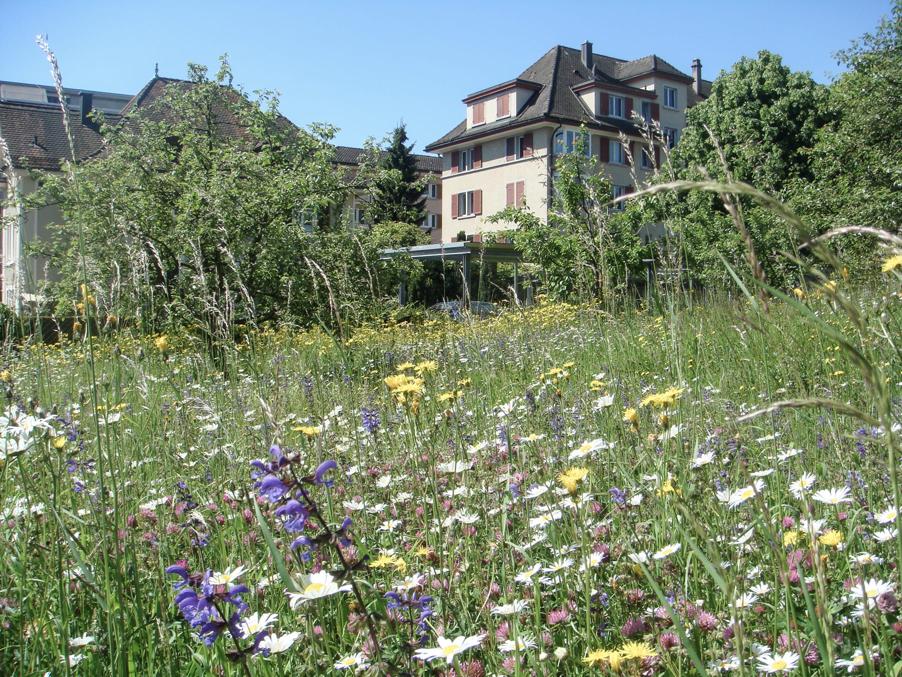 Bunte Blumenwiesen mit regionalen Gewächsen sind insektenfreundlich, klassischer englischer Rasen ist es ganz und gar nicht. Monokulturen wie diese schliessen eine prosperierende Artenvielfalt beinahe aus und sind ökologisch im Grunde unbedeutend. Besser also auf einen natürlichen und bunt-blühenden einheimischen Rasen setzen.
