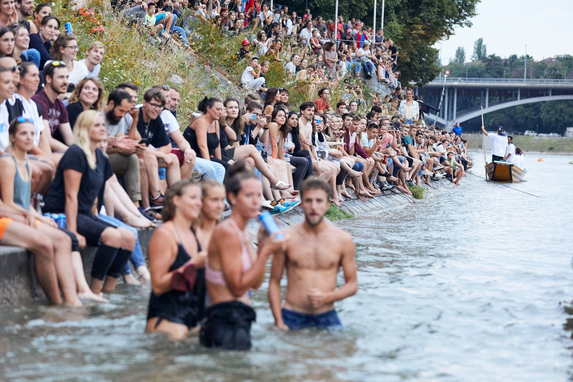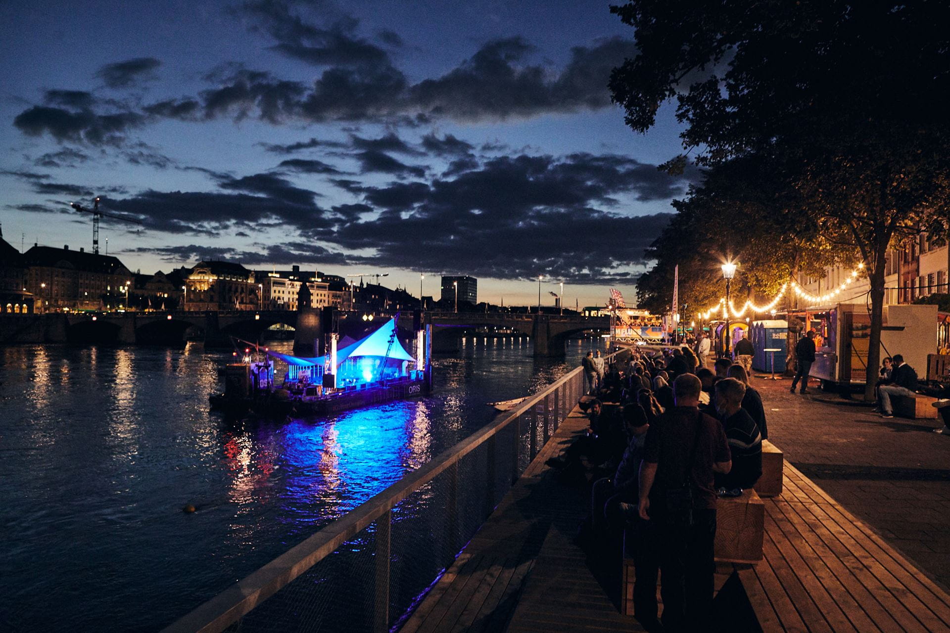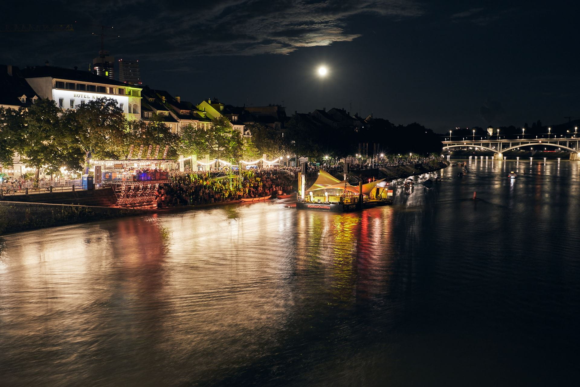 Ein grosser Teil unseres Publikums kommt wegen dem unvergleichlichen Festival-Ort auf der Treppe am Rhein – einem der schönsten Orte in Basel. Das FLOSS ist ein absolut einmaliges Phänomen: zum einen wären da drei Wochen lang tägliche Auftritte von exklusiven Künstlerinnen und Künstlern mitten auf dem Wasser… Hier kann man einfach einen Picknick-Korb zum Rheinbord mitnehmen und ganz ungezwungen jeden Tag mediterranes Feeling nach der Arbeit erleben… Wo gibt es das schon? Die atmosphärische Basler Stadtkulisse sorgt für ein einzigartiges Sommererlebnis mit Feriengefühl. Und das ohne täglich 100 oder mehr Franken für ein Ticket zahlen zu müssen. Wir sind dankbar, wenn die Kollekte-Netze der Matrosinnen und Matrosen gefüllt sind – vielen Dank dafür. Und auch wenn man seinen Abfall wieder mitnimmt.