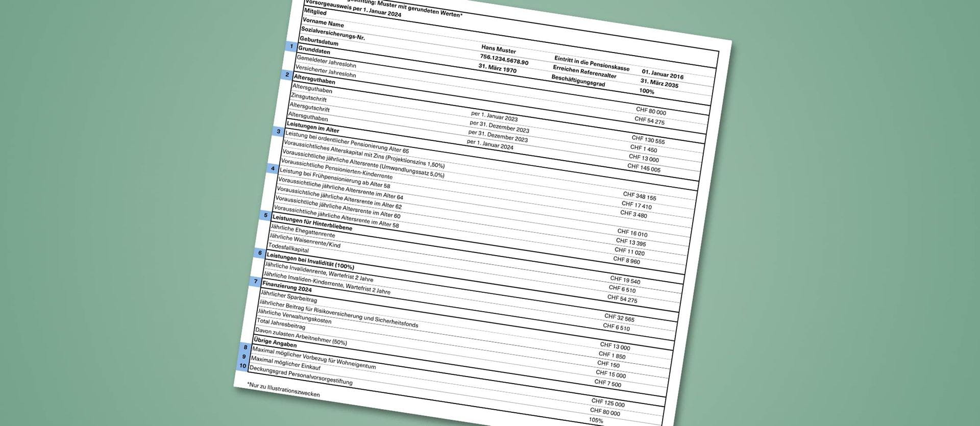 Ihr Pensionskassenausweis ist eine Schatzkammer, was die Informationen rund um Ihre Altersleistungen angeht.