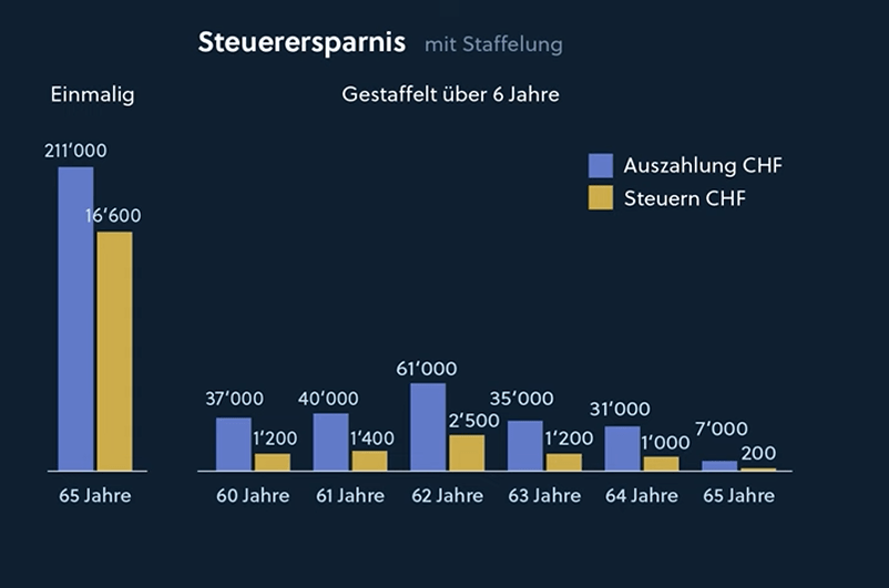 Besonders wichtig: Wer früh startet und regelmässig einzahlt, profitiert am meisten. Mit mehreren 3a-Konten und einer gestaffelten Auszahlung reduzieren Sie auch die Kapitalauszahlungssteuern bei Ihrer Pensionierung deutlich.